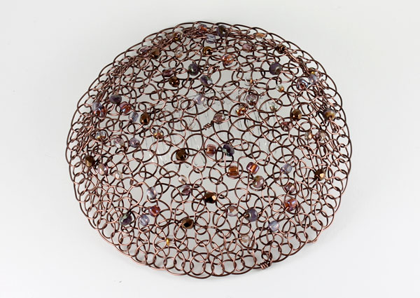 My knitted kippot are available in a select range of wire colors suitable for a Bat Mitzvah girl as well as her mother and grandmother. Czech glass beads and Japanese seed beads are knit in to the piece and each one is truly unique. Some styles have a beaded edge in addition to the beads knit throughout.