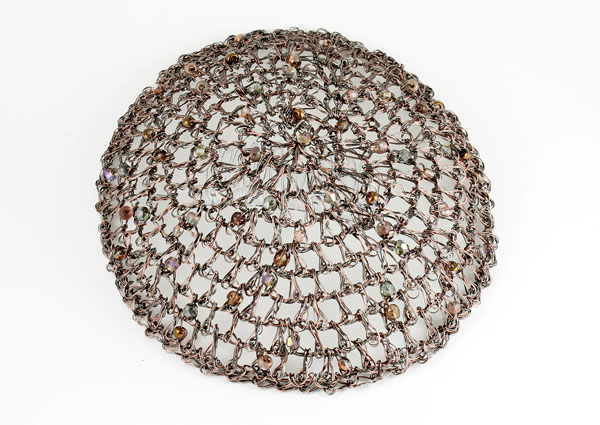 CCH118: Antique copper crocheted wire kippah with copper tonal beads